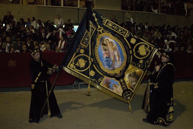 Bandera del Paso: De corte renacentista, es una pieza que se realizó durante dos años de trabajo y terminada en 2007. Está bordada a mano en oro y sedas sobre raso de color negro. La dirección artística la llevó a cabo José López Gimeno. Son de destacar los medallones bordados en sedas con motivos barrocos. En el reverso de la bandera aparece el escudo de la cofradía que integran los miembros de la Judicatura.