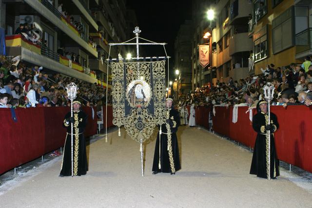 Estandarte de la Soledad y faroles: El estandarte de la Virgen de la Soledad, fue bordado bajo la dirección de D. Emiliano Rojo, y además del medallón central donde en sedas se representa la imagen de la Virgen, el calado en oro que lo remata supuso una innovación allá por los años cincuenta.
