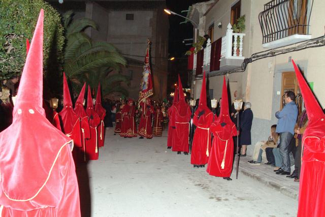 La procesión sale de la iglesia parroquial de San Cristóbal y tiene como escenario el barrio del mismo nombre, conociéndose esta procesión entre los lorquinos como "La Procesión del Barrio", recorriendo sus señeras y antiguas calles de Portijico, Escalante, Mayor, Plaza de la Estrella y Plaza de las Hortalizas, para entrar de nuevo a su sede la iglesia de San Cristóbal, donde impresiona la entrada de los tronos por la estrechez y poca altura de su arco de entrada que produce que quienes lo portan tengan que poner las varas y las manos casi en el suelo.